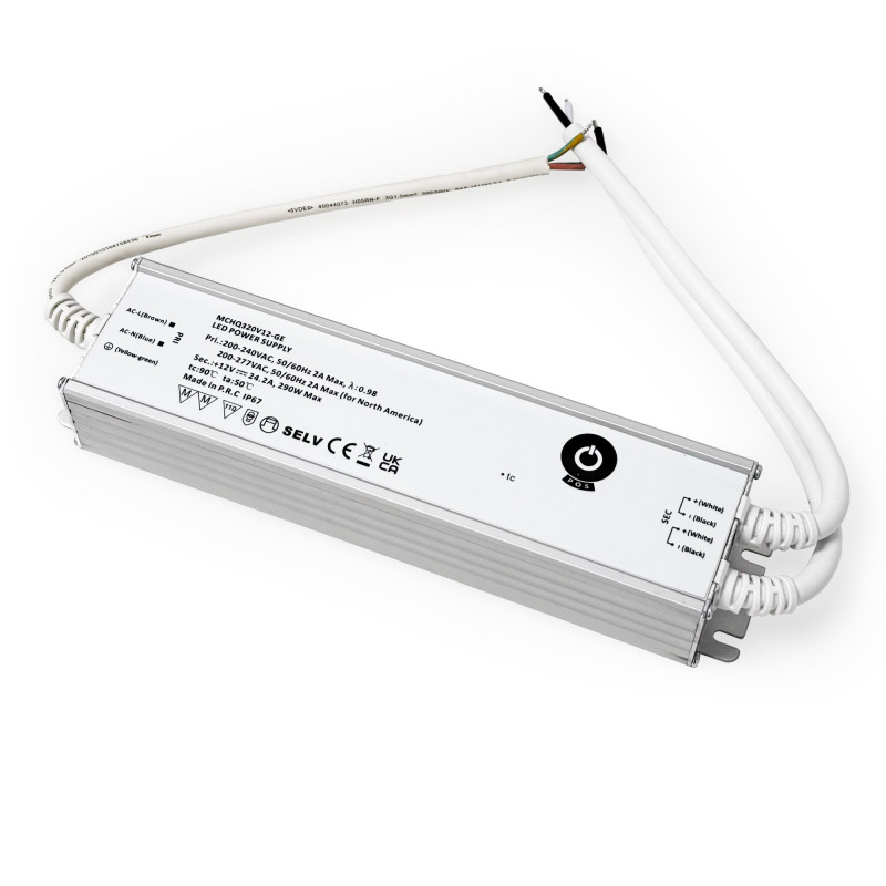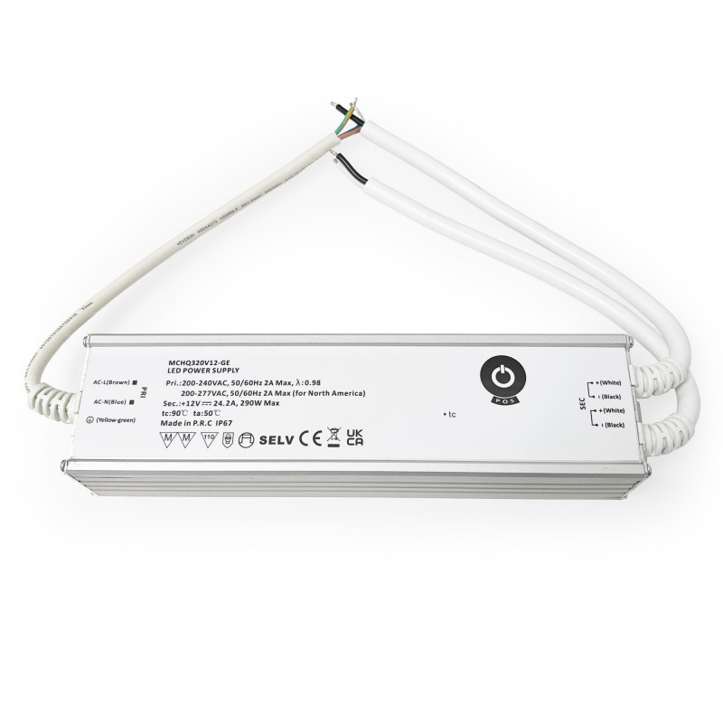 Esta fuente de alimentación es la solución ideal para alimentar sistemas y luminarias LED con una tensión de trabajo de 12V y una potencia máxima de 290W, proporcionando una corriente de salida de hasta 24,2A de forma estable y segura.