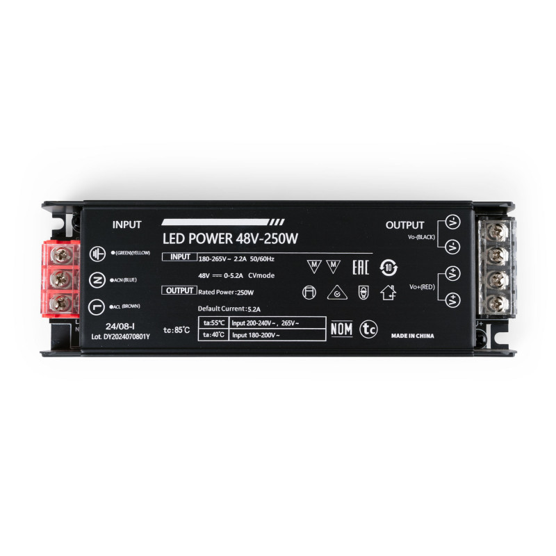 Esta fuente de alimentación de 250W destaca por su diseño compacto. Permite alimentar dispositivos de 48V y hasta 5.2A de manera confiable y eficiente.