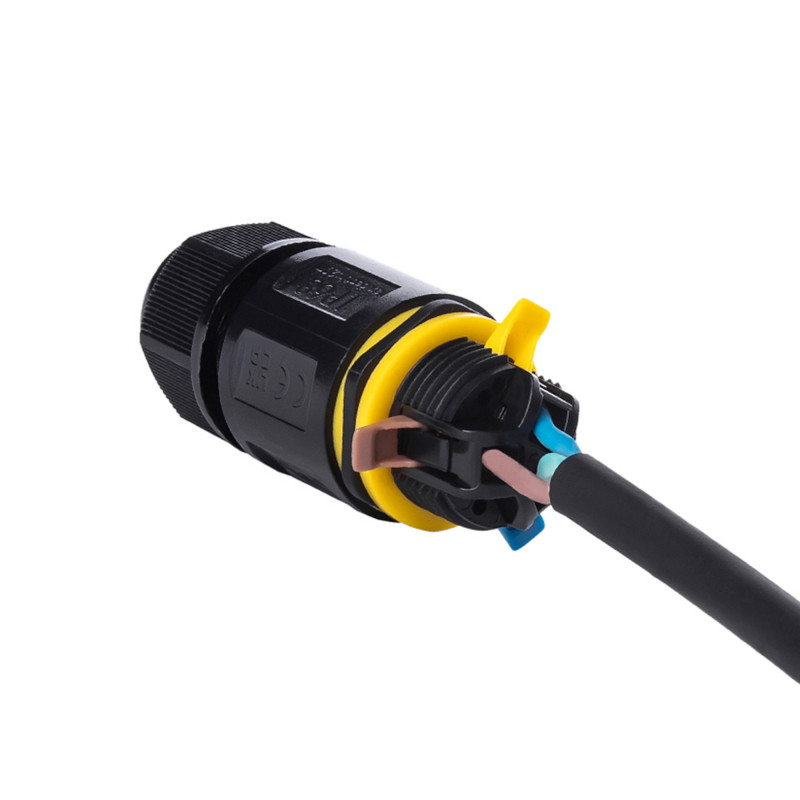 Este conector impermeable está diseñado para garantizar un empalme seguro en entornos exigentes. Ideal para exteriores, es sumergible y resistente al polvo y la humedad.