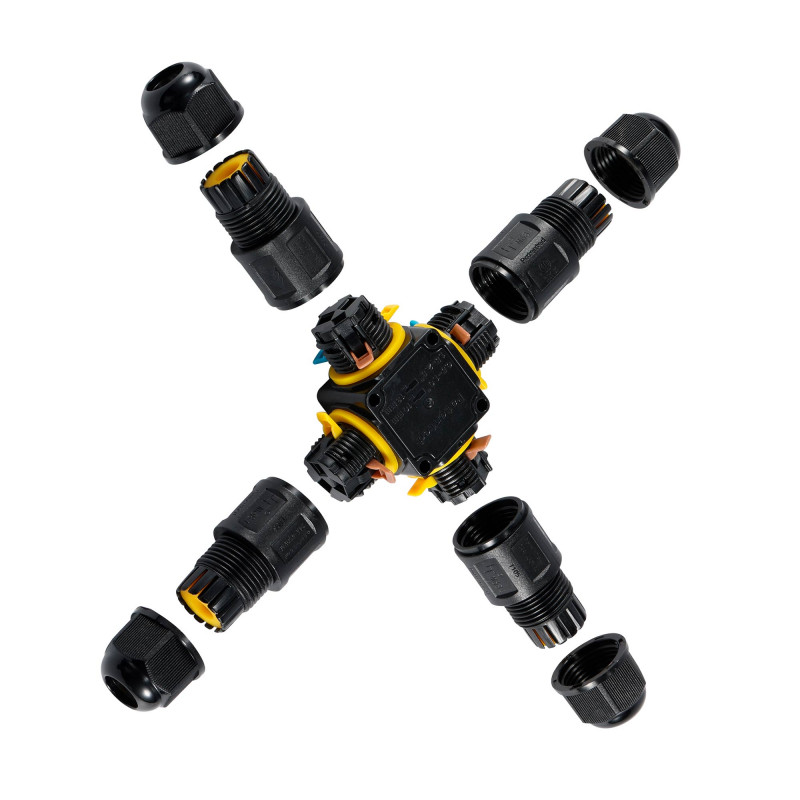 Conector impermeable en forma de X para cables - Resistencia y durabilidad