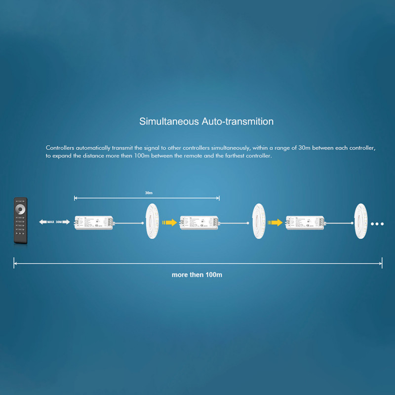 - Control múltiple: Un solo controlador puede aceptar hasta 10 mandos a distancia, y un mando puede controlar un número ilimitado de controladores.