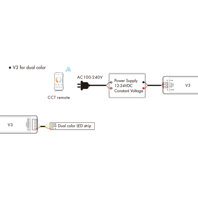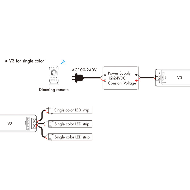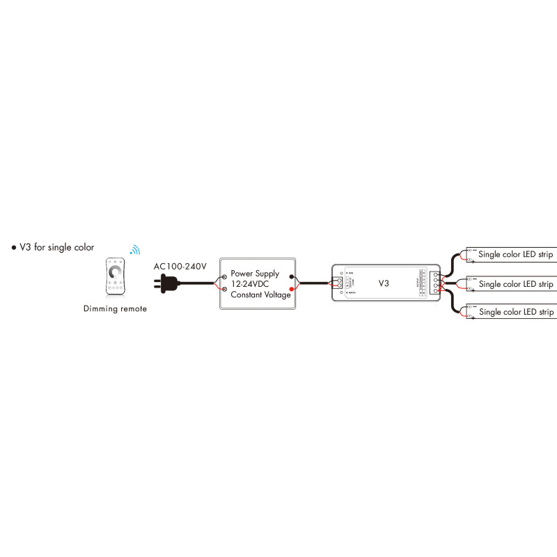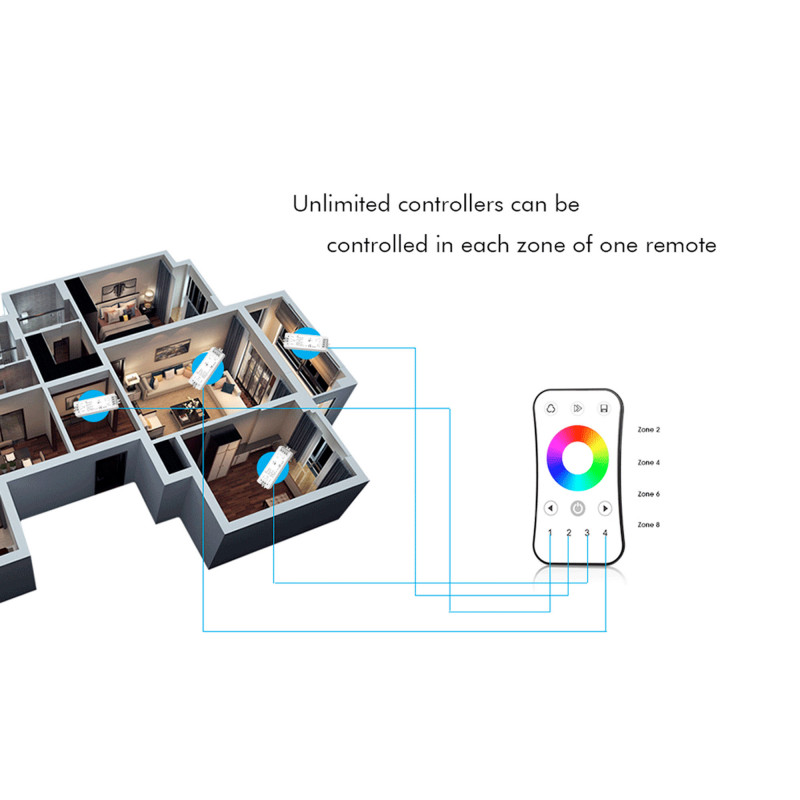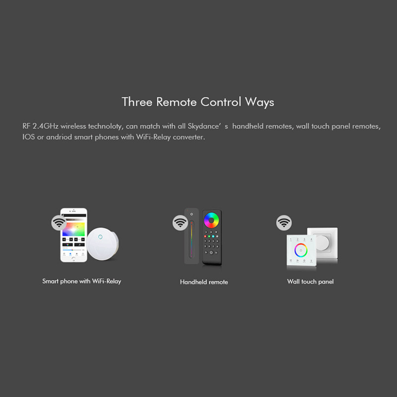 - Compatibilidad: Compatible con mandos a distancia monocolor, CCT, RGB RF 2.4GHz Skydance.