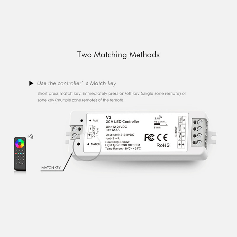 Controlador Monocolor/ CCT/ RGB de 3 canales: Máxima flexibilidad y control
