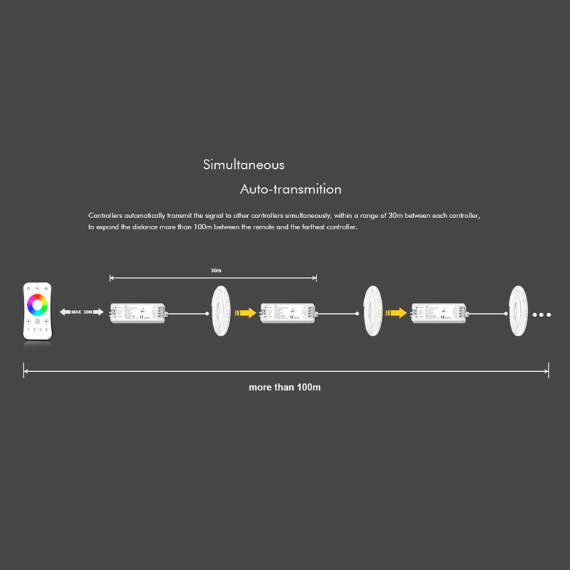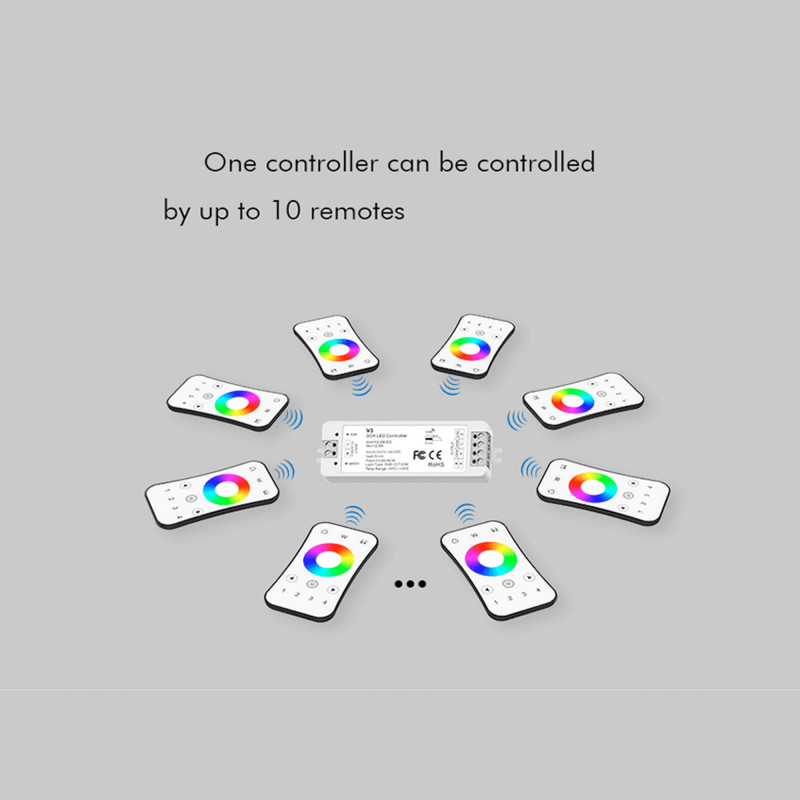 - Control múltiple: Un solo controlador puede aceptar hasta 10 mandos a distancia, y un mando puede controlar un número ilimitado de controladores.