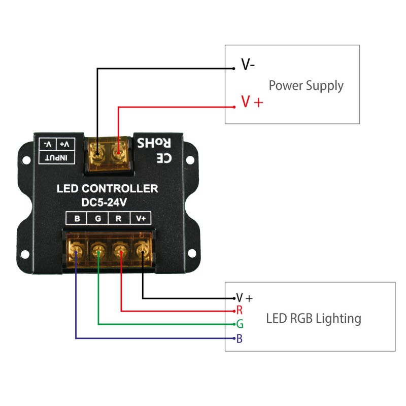 Este controlador de tiras LED RGB es compatible con la mayoría de las tiras LED RGB de 5V a 24V con una corriente máxima de 30A.