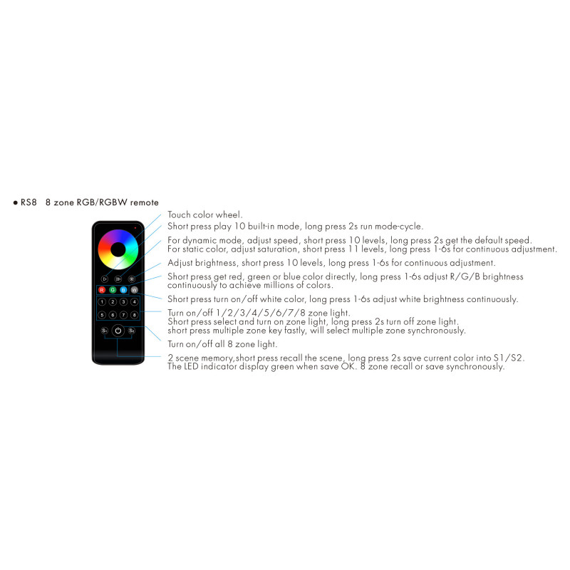 Mando a distancia LED RGB / RGBW - 8 zonas / 2 escenas - SK-RS8 - Skydance