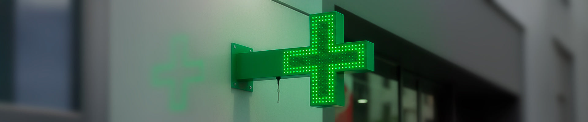 Barcelona LEDGrünes LED-Apothekenkreuz P16 - doppelseitig - einstellbar- Außeneinsatz