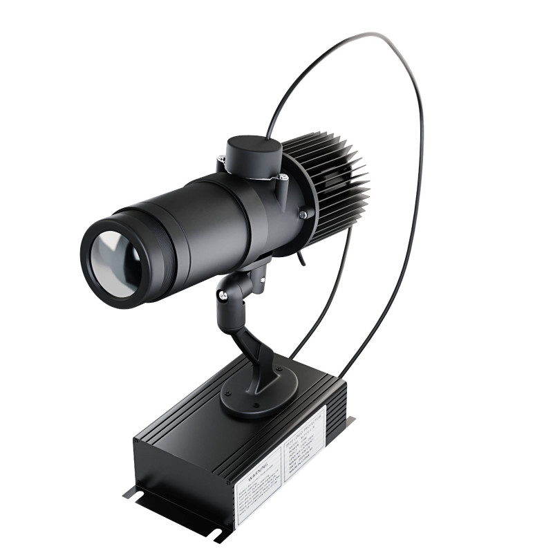 - Hohe Auflösung und einstellbarer Fokus: Er verfügt über eine 20°-Optik. Der optische Kopf kann gedreht werden, um die Schärfe und den Fokus des Bildes einzustellen und so sicherzustellen, dass Ihr Logo oder Ihre Botschaft mit maximaler Klarheit gesehen wird.