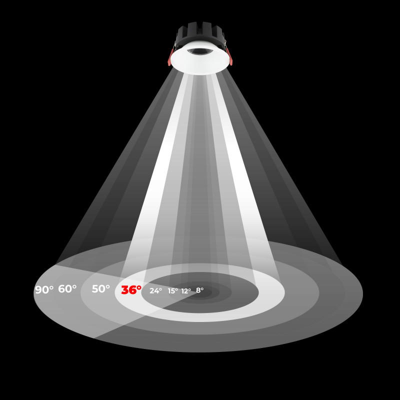 - 36° Öffnungswinkel: Bietet eine fokussierte Beleuchtung, ideal zur Hervorhebung bestimmter Objekte oder Bereiche.