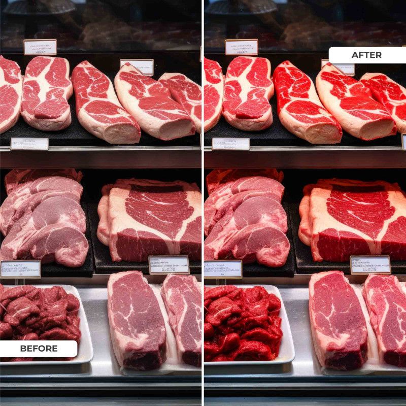 - Fleischerei: rosa Farbton, der die rote Farbe des Fleisches hervorhebt.