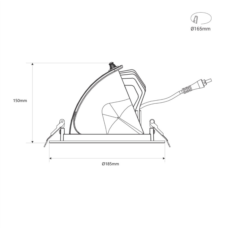 - Einfache Einbaumontage: Einfacher Einbau in Decken mit einem Ausschnitt von Ø165mm, der eine perfekte Passform gewährleistet.