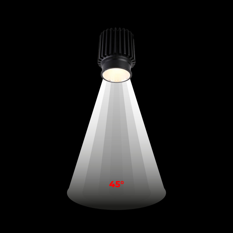 - Fokussierte Beleuchtung: Mit einem Öffnungswinkel von 45º bietet es eine fokussierte Beleuchtung, ideal zur Hervorhebung von Vitrinen, Schaufenstern oder bestimmten Bereichen.