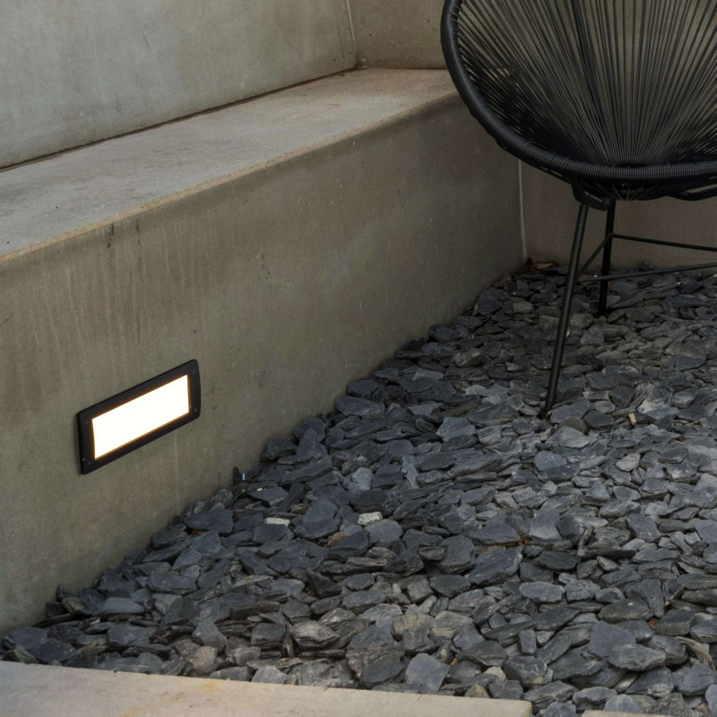 Rechteckige Einbauleuchte, hergestellt aus Harz und Polycarbonat-Diffusor. Stoßfestes Material, resistent gegen Korrosion und Oxidation.
