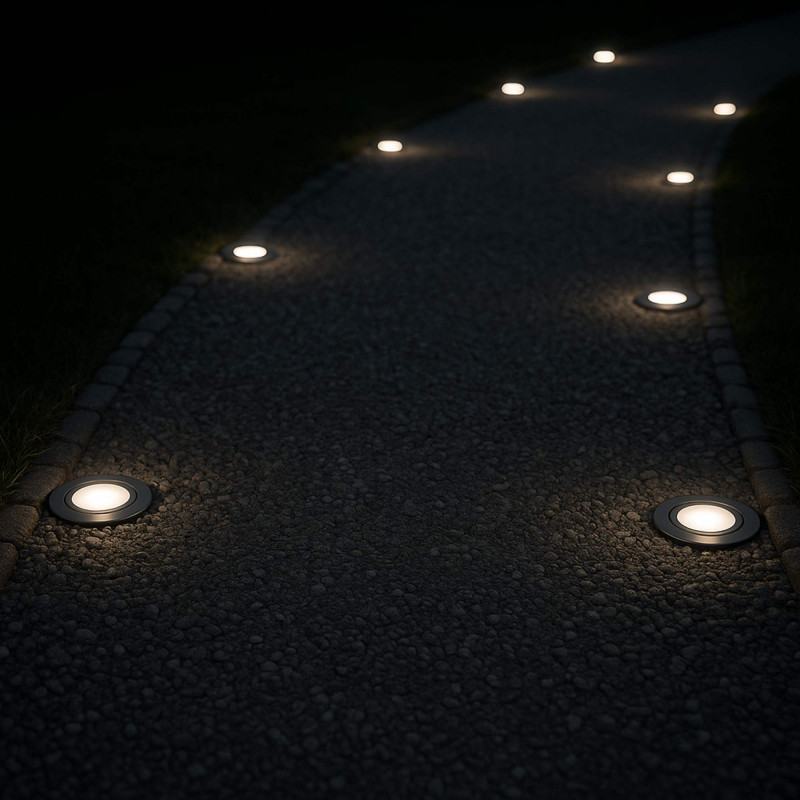 Dieser LED-Einbaustrahler kombiniert kompaktes Design und Langlebigkeit, um Böden mit Stil und Funktionalität zu beleuchten. Perfekt für Außenbereiche, ideal für Terrassen, Gärten, Treppen und Wege.