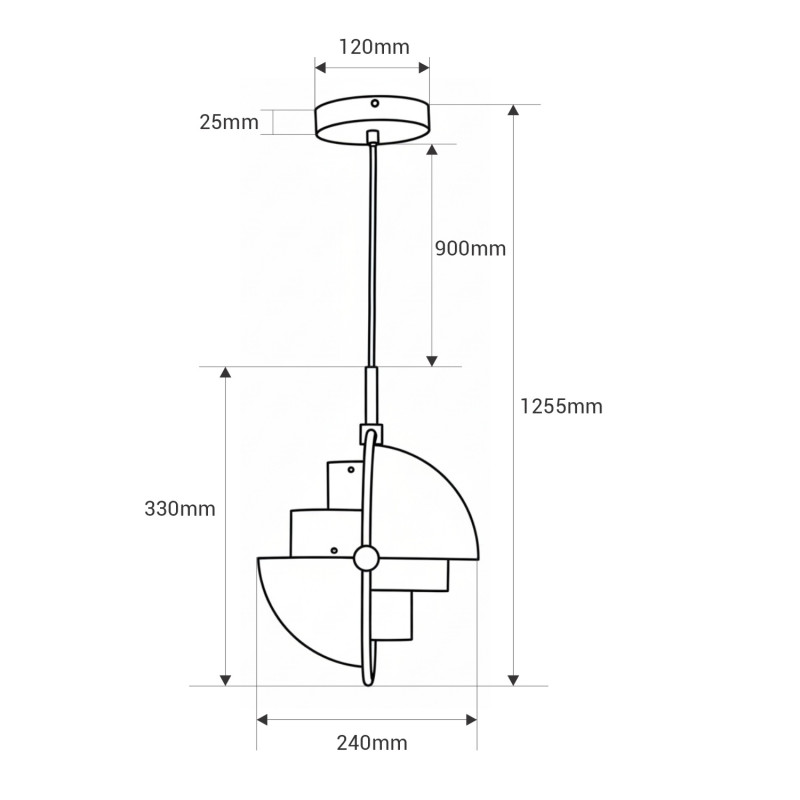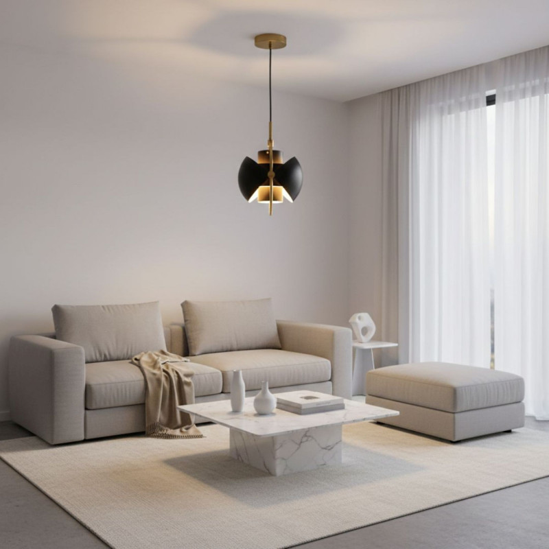 - Einzigartiges Design: Zwei halbkugelförmige Schirme, die von einem Metallring gestützt werden, ermöglichen es, das Licht nach oben, unten oder in individuellen Winkeln zu richten, wodurch ein dekorativer asymmetrischer Effekt entsteht.