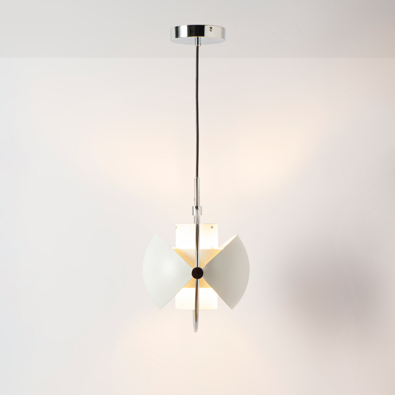- Einzigartiges Design: Zwei halbkugelförmige Schirme, die von einem Metallring gestützt werden, ermöglichen es, das Licht nach oben, unten oder in individuellen Winkeln zu richten, wodurch ein dekorativer asymmetrischer Effekt entsteht.