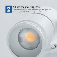 Sie können als Wandleuchten oder Deckenleuchten mit Zoom installiert werden. Drehen Sie die Objektivverstellung, um den Schärfewinkel einzustellen; die Größe der Blende ändert sich mit der Schärfeeinstellung.