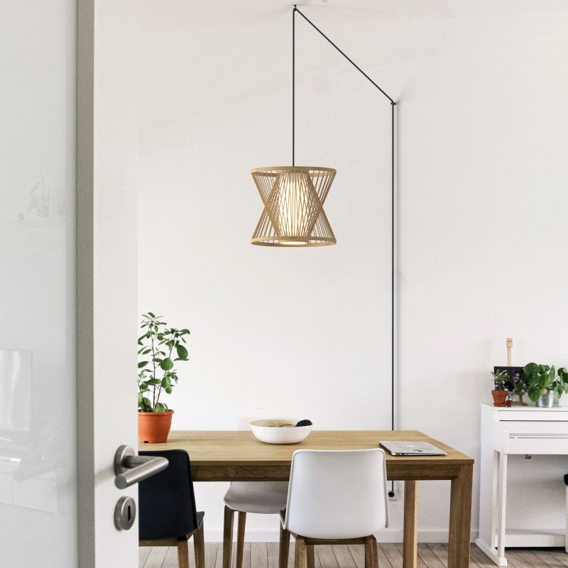 Pendelleuchte aus Bambus „Rise“ mit Schalter und Stecker