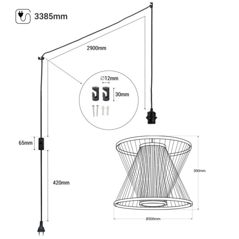 Die Fassung eignet sich für eine E27-Lampe mit einer Leistung von bis zu 60W (nicht im Lieferumfang enthalten). Das Kabel ist in drei Farben erhältlich (weiß, schwarz und Naturseil).