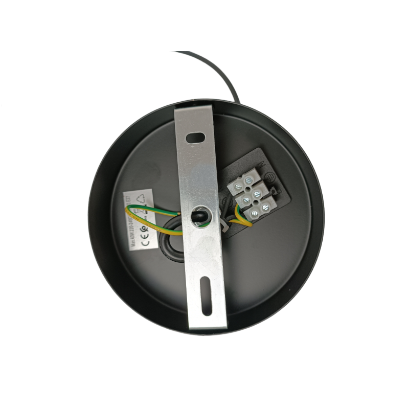 Sie ist hochwertig schwarz lackiert und wird mit einem 1,5 m langen schwarzen Textilkabel geliefert, das an der Metall-Deckenrosette verstellbar ist. Im Lieferumfang der Leuchte ist Montagezubehör enthalten, das eine schnelle und einfache Installation ermöglicht.