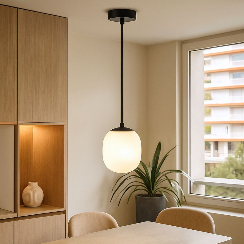 - Zeitgenössisches Design: Der Opalglasschirm macht das Licht weicher und schafft eine gemütliche Atmosphäre.