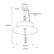 Diese Leuchte zeichnet sich durch ihr architektonisches Design aus, das aus aufgehängten, scheinbar im Raum schwebenden Scheiben besteht, die zusammen mit den integrierten LED-Strahlern eine präzise, einhüllende und visuell sehr leichte Beleuchtung erzeugen.