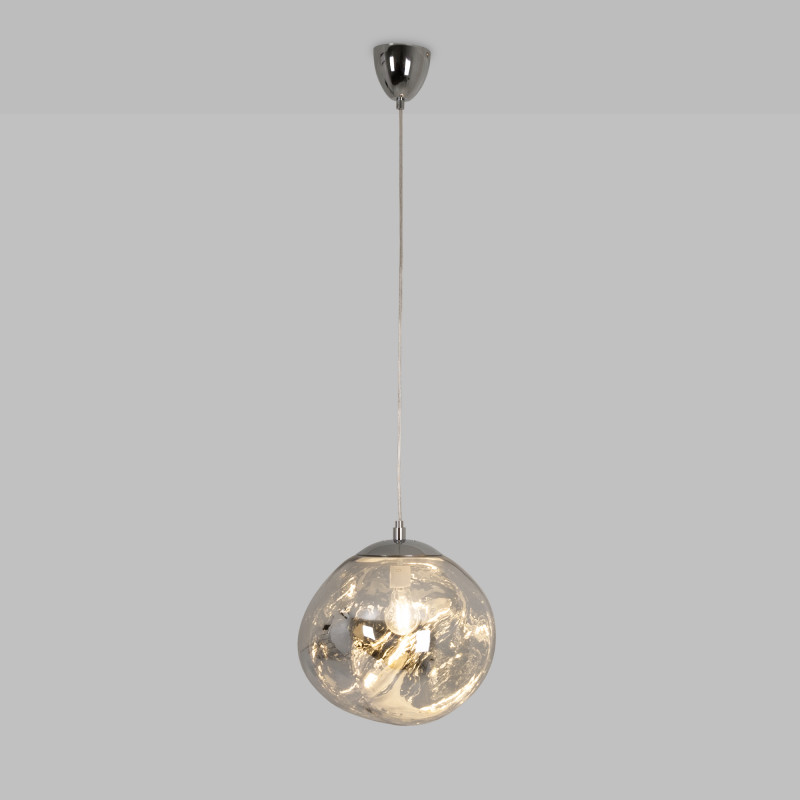 RAINY" ist eine avantgardistische Pendelleuchte. Ihr Lampenschirm erinnert an die Verschmelzung von Materialien in einem fließenden Zustand und schafft ein fesselndes visuelles Erlebnis.