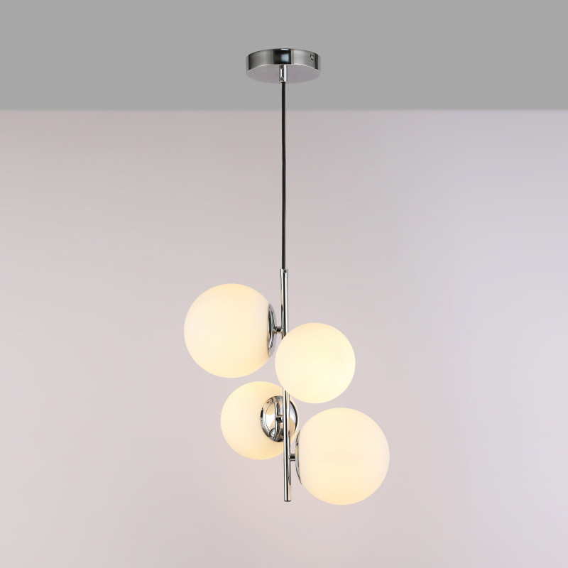 - Minimalistisches Design: Mit 4 Opalglaskugeln und einer Aluminiumstruktur in Gold- oder Chromausführung ist diese Leuchte die perfekte Ergänzung für Innenräume mit unterschiedlichen Einrichtungsstilen.