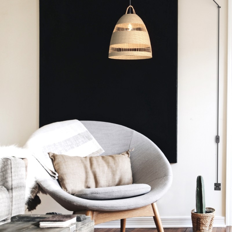 Pendelleuchte aus Korbgeflecht „Ikken“ mit Schalter und Stecker