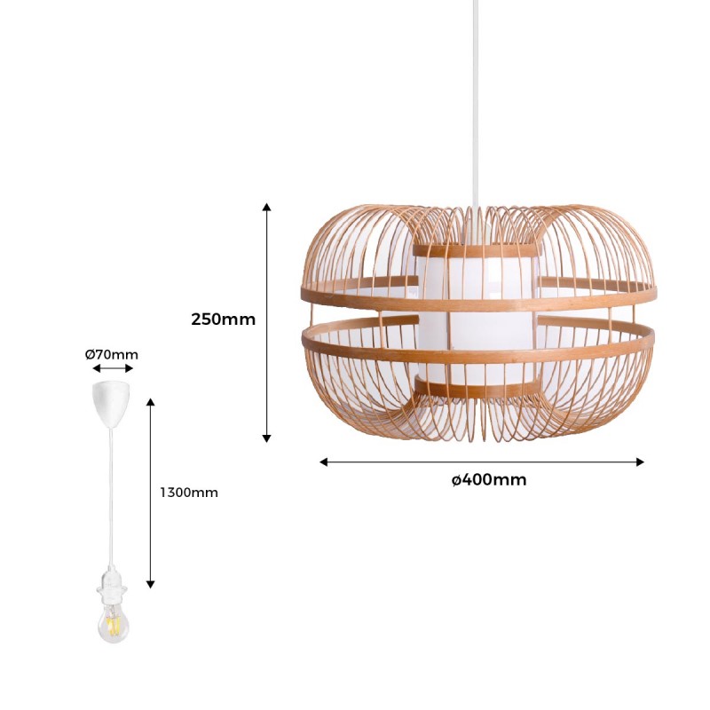 Für eine E27-Lampe (nicht enthalten). Kabel (verstellbar) und Baldachin sind in drei Varianten erhältlich (weiß, schwarz und Holz/Naturseil).