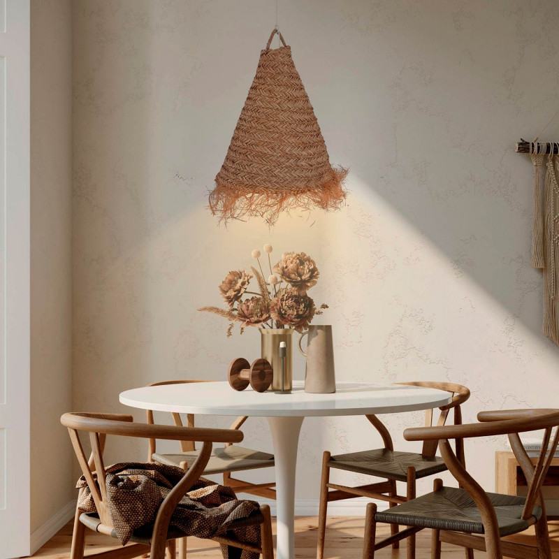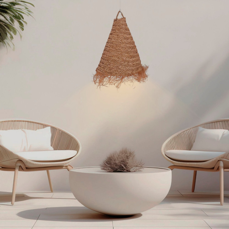 Unsere NAM XL ist aus Seegras gefertigt, dessen Fasern sehr widerstandsfähig und flexibel sind, was die lange Lebensdauer der Leuchte garantiert.