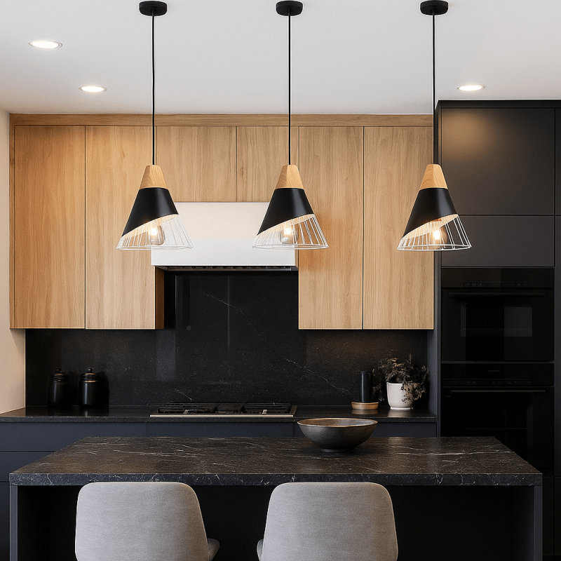 Skandi Hängeleuchte ADOR aus Metall und Holz