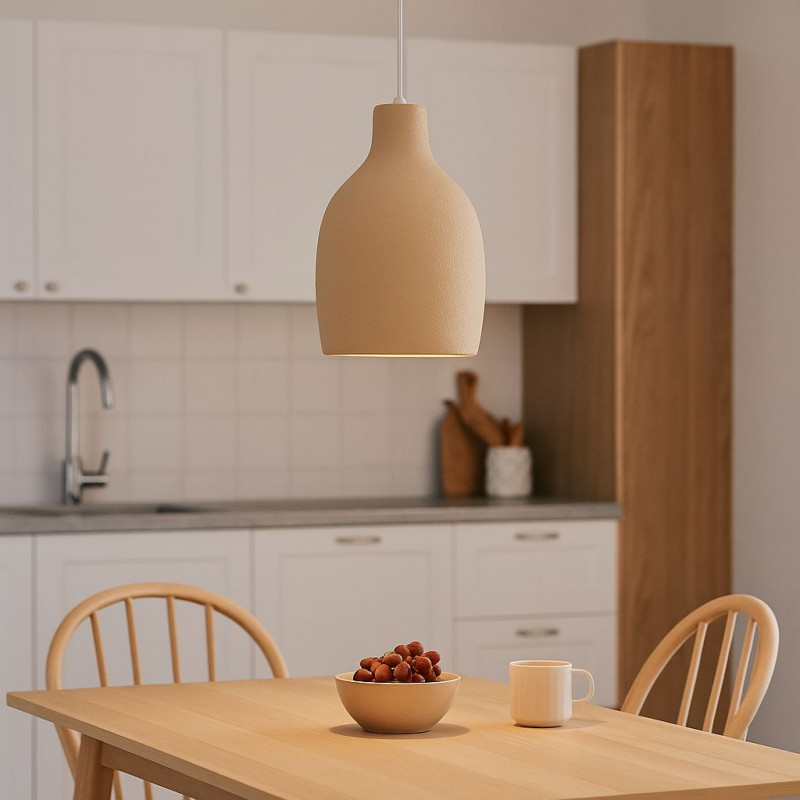 Hängeleuchte "Wabi Sabi D300": weiche Form und handgefertigte Textur.