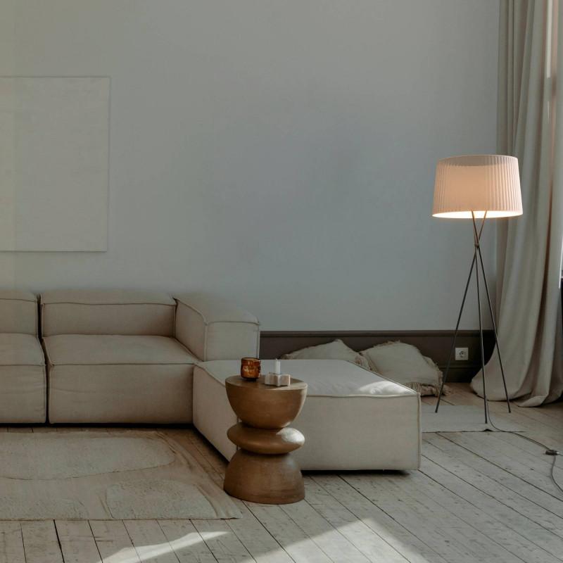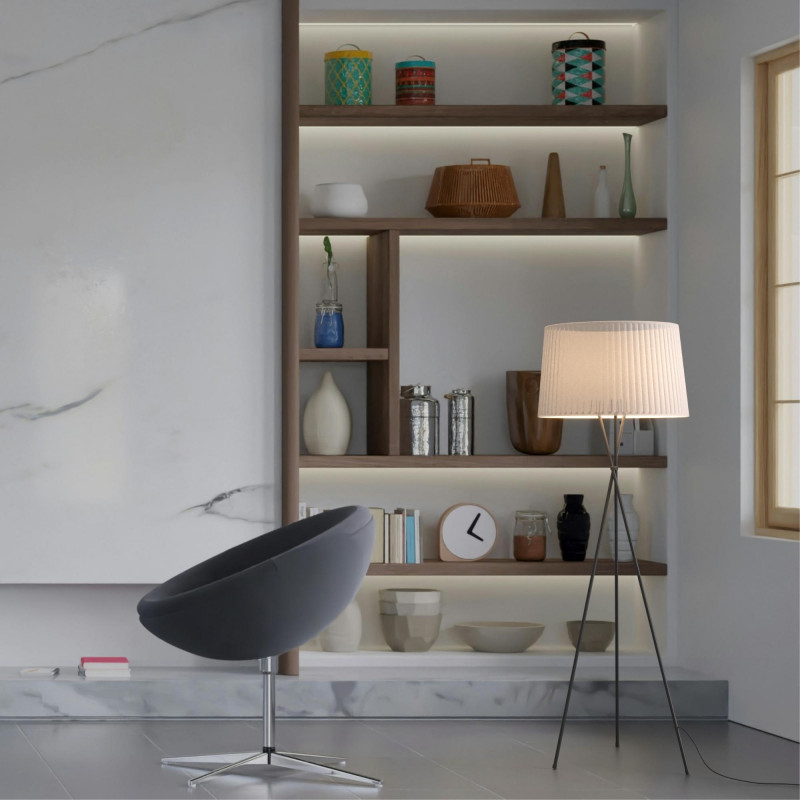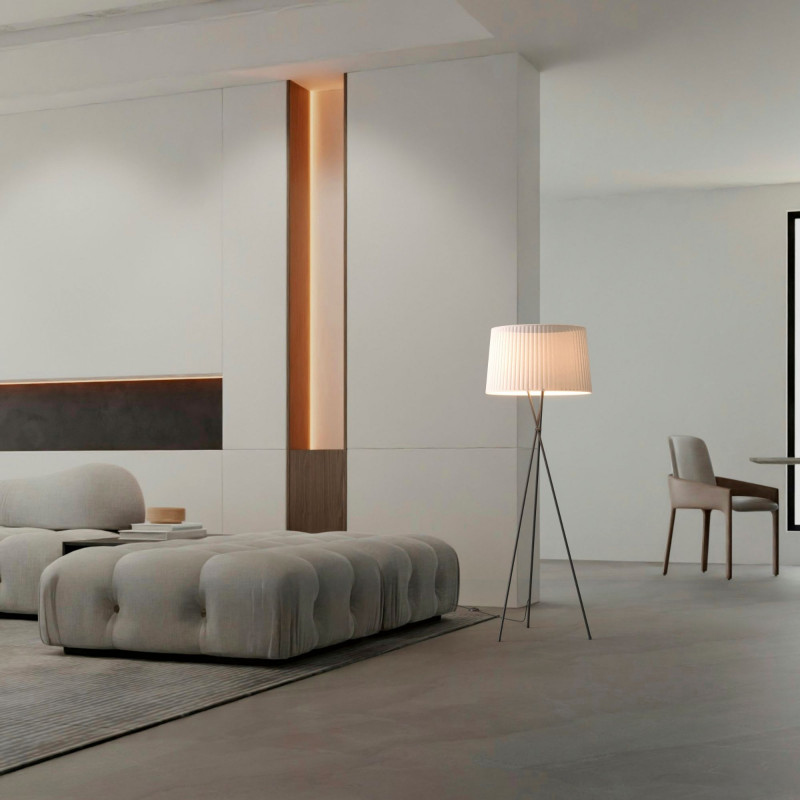 Verschönern Sie Ihre Räume mit der Stehleuchte "PRON", die sich perfekt für neutrale Umgebungen oder moderne Dekorationen eignet.