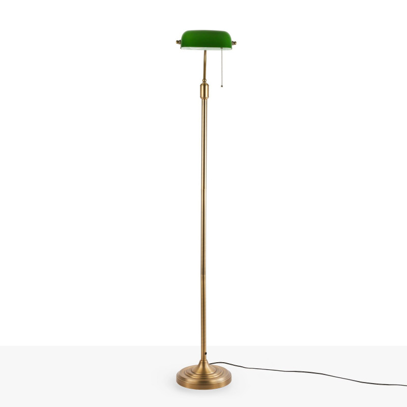 Die Stehleuchte BANQUERO, eine echte Ikone des klassischen Designs, wurde Anfang des 20. Jahrhunderts dank ihres eleganten Designs und ihres markanten grünen Schirms vor allem in Bankbüros beliebt.