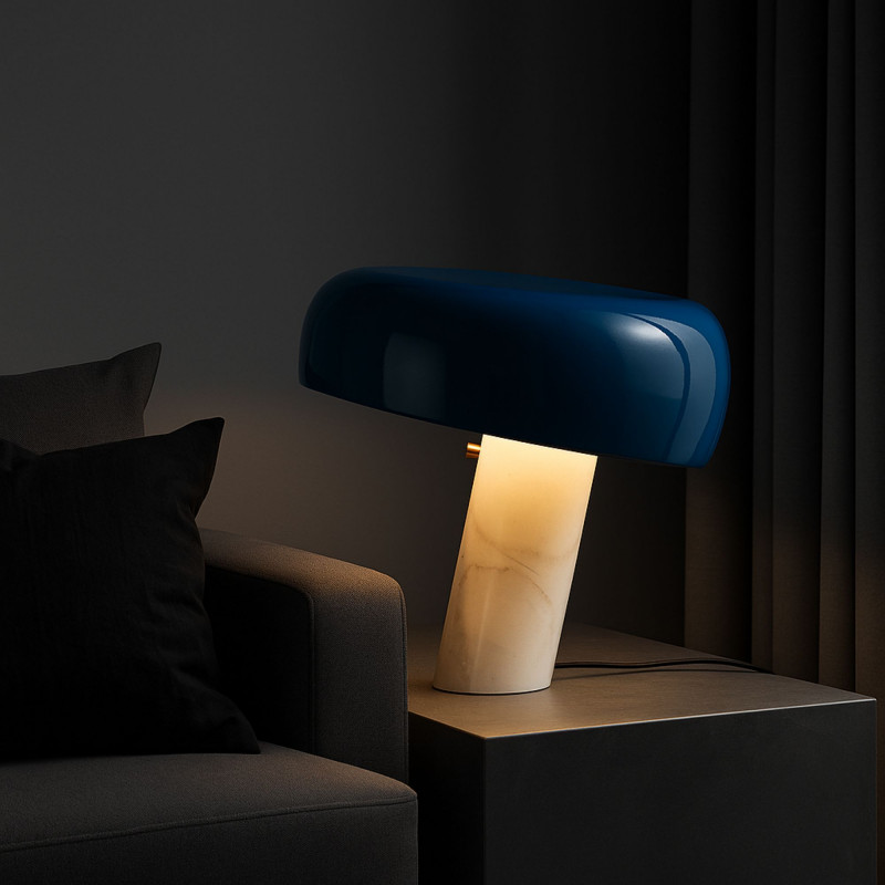 • Hochwertige Materialien: Der lackierte Metallschirm, der Glasdiffusor und der weiße Marmorsockel sorgen für außergewöhnliche Haltbarkeit und Eleganz.