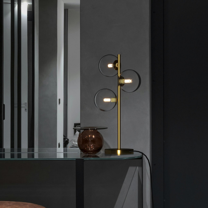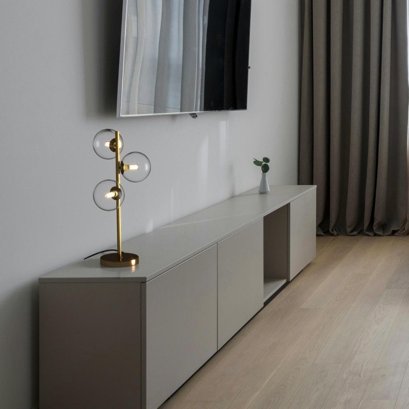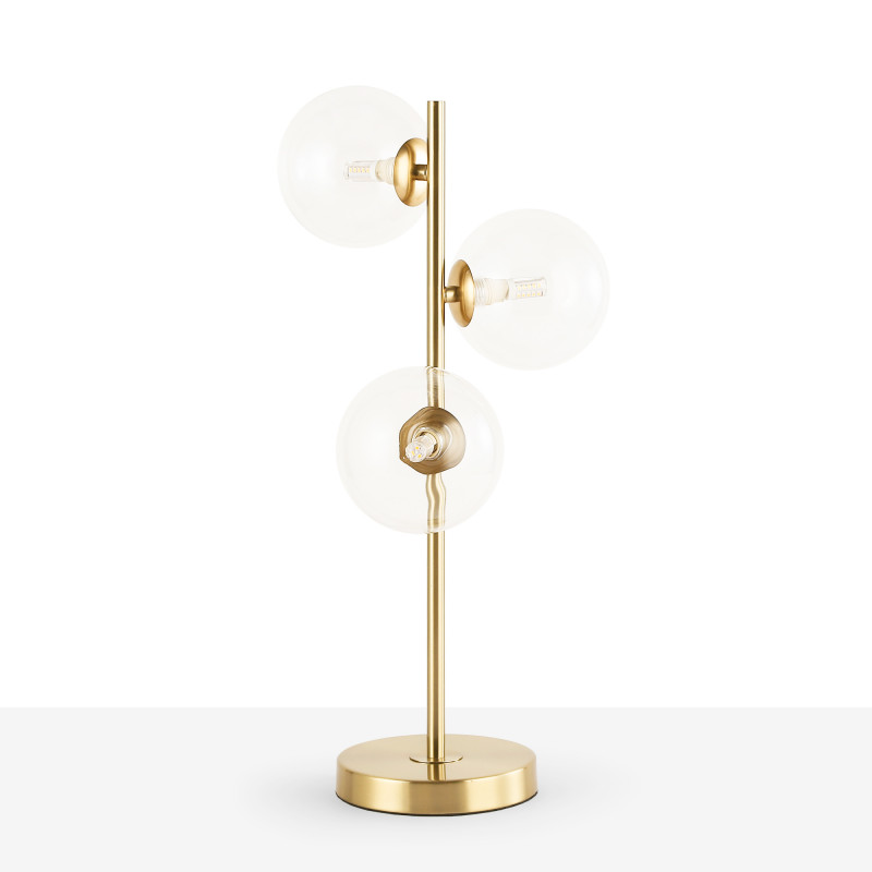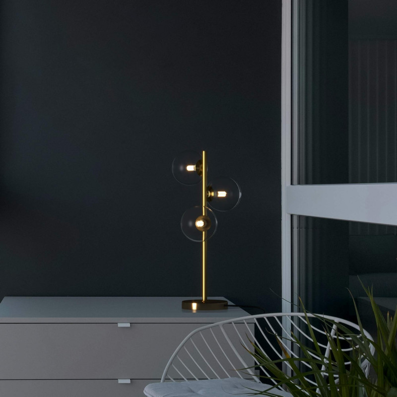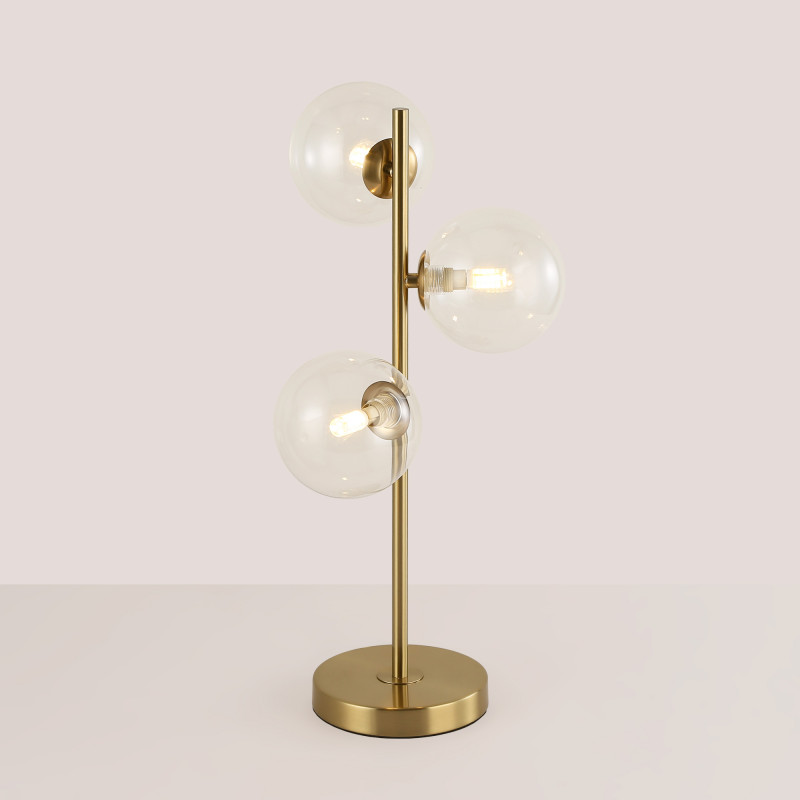 - Hochwertige Materialien: Ein stabiler Sockel aus vergoldetem Metall und drei klare Glaskugeln unterstreichen das Design.