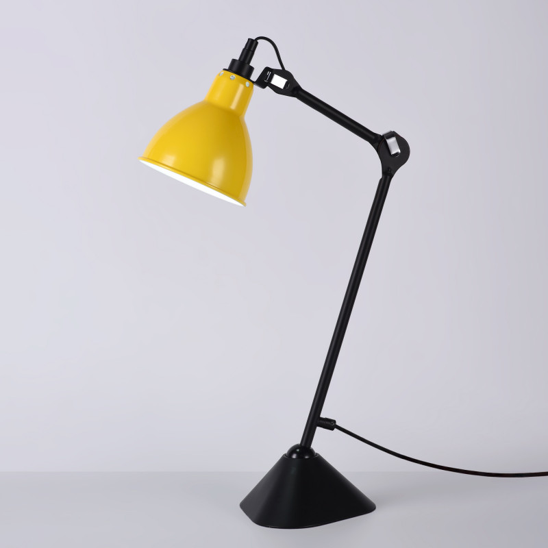 - Die Leuchte hat eine feste Basis und einen Gelenkarm mit einem Verstellpunkt, der die Neigung der Teile und des Schirms ermöglicht. Der Schirm ist um 360° drehbar.