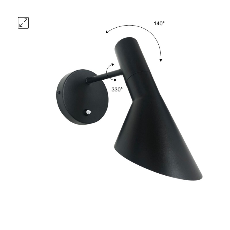 Mit ihrem asymmetrischen Schirm lenkt diese Wandleuchte das Licht auf einzigartige Weise nach unten. Die Innenseite des Schirms ist weiß lackiert und sorgt für eine weiche, gleichmäßige Ausleuchtung, während die Schwenkbarkeit eine präzise Ausrichtung des Lichts auf den gewünschten Bereich ermöglicht.