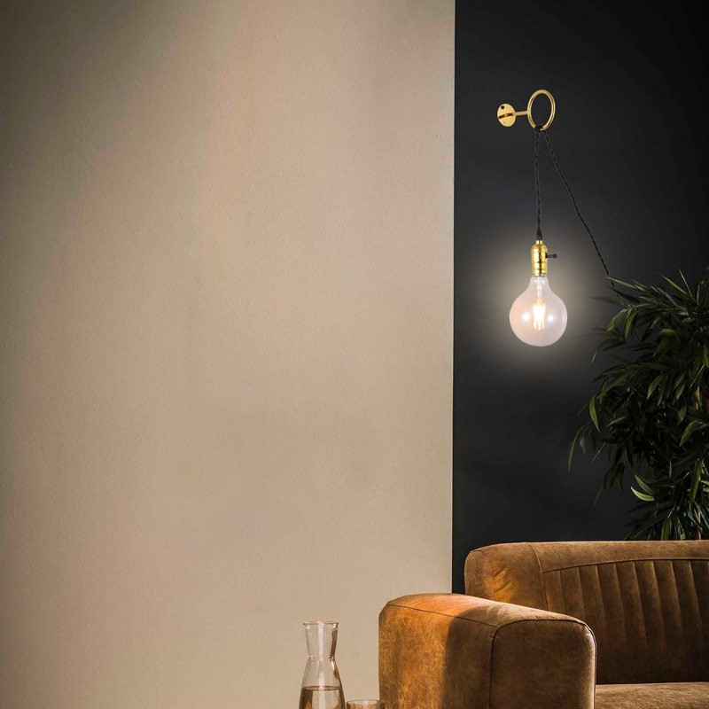 Das Produkt misst 85x160mm und kann auf verschiedene Arten installiert werden, indem man die E27-Glühbirne (nicht im Lieferumfang enthalten ) auf den Ring stellt oder sie mit einem einfachen Knoten an das Kabel hängt. Das 240 cm lange Kabel besteht aus Seil und ist schwarz gefärbt. Es wird direkt an die Wand angeschlossen. Wir empfehlen Ihnen, das Produkt mit einer warmen E27-Glühbirne zu kombinieren (siehe Zubehör oder verwandte Produkte), um ein ästhetisch ansprechendes und designorientiertes Ergebnis zu erzielen. Die Lampenfassung fügt sich mit Eleganz und Schlichtheit in das Design ein. Außerdem verfügt er über einen Schalter, der eine praktische und bequeme Nutzung ermöglicht. Hergestellt aus Aluminium mit goldfarbener Oberfläche. Die Materialien heben die Textur der Lampe hervor, die leicht zu reinigen ist, nicht rostet und sich weich anfühlt. Sie können die Wandleuchte zum Lesen am Bett, in Fluren, in Restaurants, Hotels oder überall in Ihrem Haus oder Geschäft verwenden. Ausschließlich für den Innenbereich geeignet, Schutzart IP20.