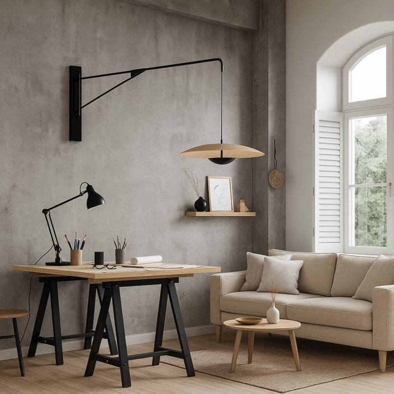 Diese Wandleuchte zeichnet sich durch ihr schwenkbares Design und ihre hochwertigen Materialien aus. Ihre retro-industrielle Ästhetik und die sorgfältig verarbeiteten Oberflächen verleihen ihr Persönlichkeit und Vielseitigkeit.