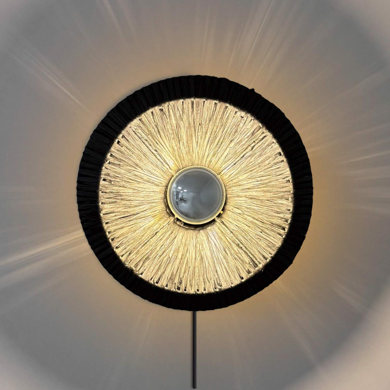 Wandlampe aus Naturfaser Rafia "HALLIE" - E27 - Schalter und Stecker