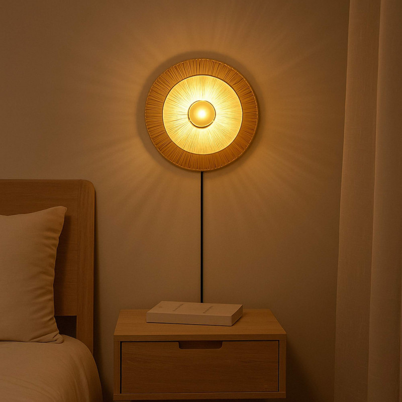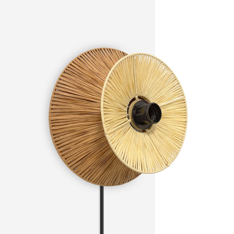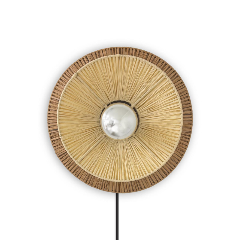 Wandlampe aus Naturfaser Rafia "HALLIE" - E27 - Schalter und Stecker