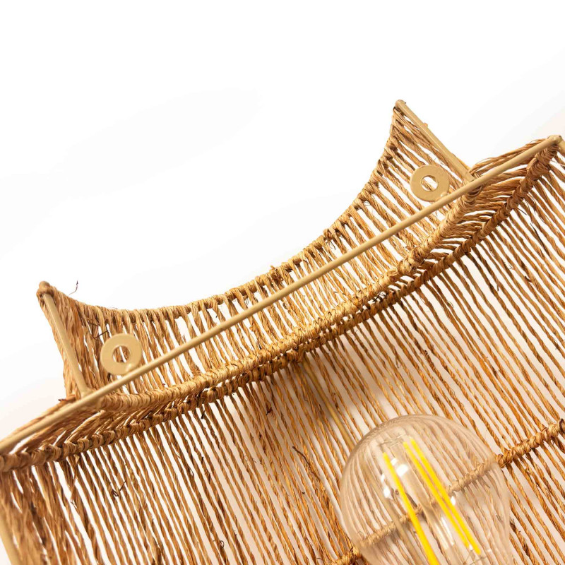 Diese Wandleuchte zeichnet sich durch ihr fließendes und organisches Design aus, das mit pflanzlichen Fasern handgefertigt wurde, die die Wärme und die Persönlichkeit des Raumes unterstreichen. Ideal für Wohnzimmer, Schlafzimmer, Flure oder Leseecken.