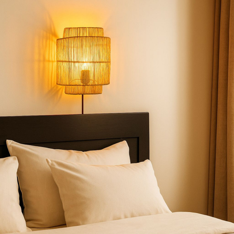 - Dekorative Beleuchtung: Die offene Struktur des Schirms lässt das Licht warm und gleichmäßig durchdringen und schafft eine gemütliche Atmosphäre.