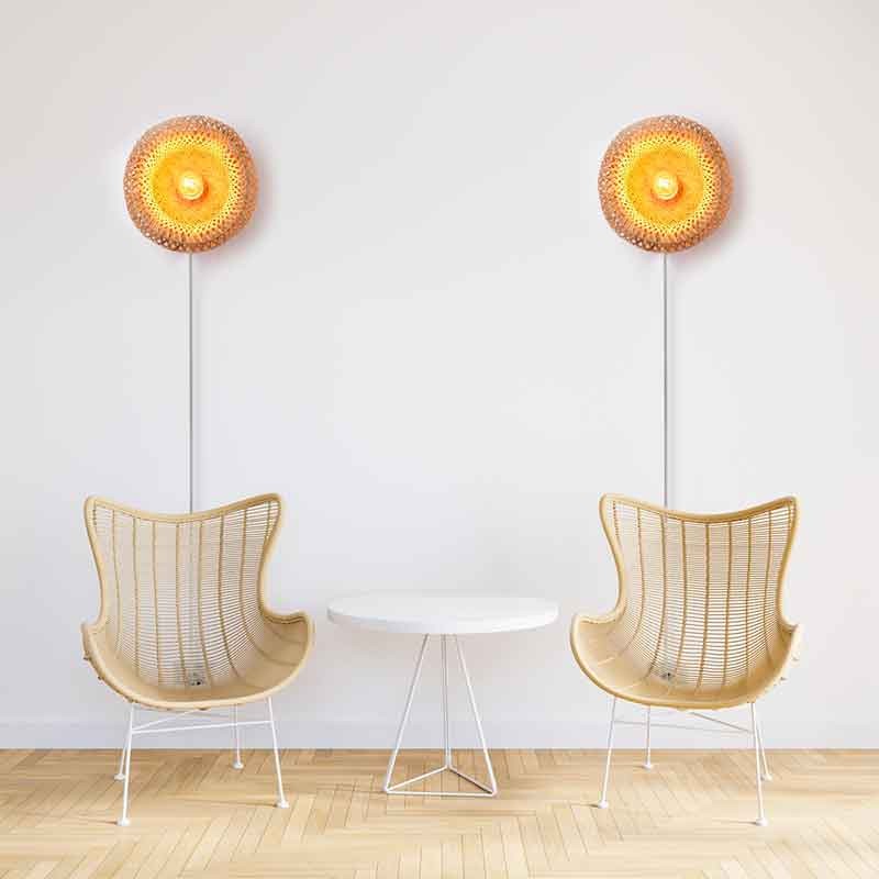 Der Schirm ist aus natürlichem Rattan und handgefertigt. Das hochwertige Material ist gegen hohe Temperaturen beständig, langlebig und haltbar. Der exotische und natürliche Stil eignet sich besonders für moderne, natürliche, Vintage- und warme Innenräume. Sie kann in Durchgangsbereichen, Restaurants, Geschäften, Bars, rustikalen Orten, usw. montiert werden.