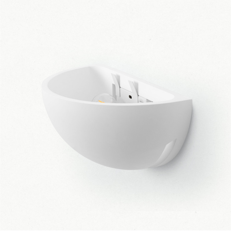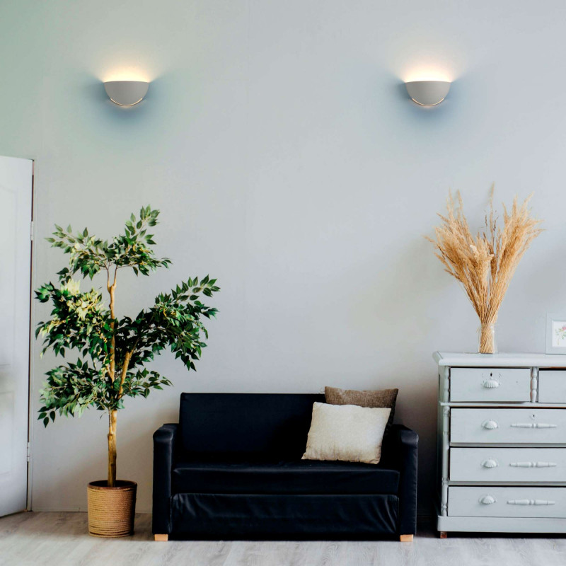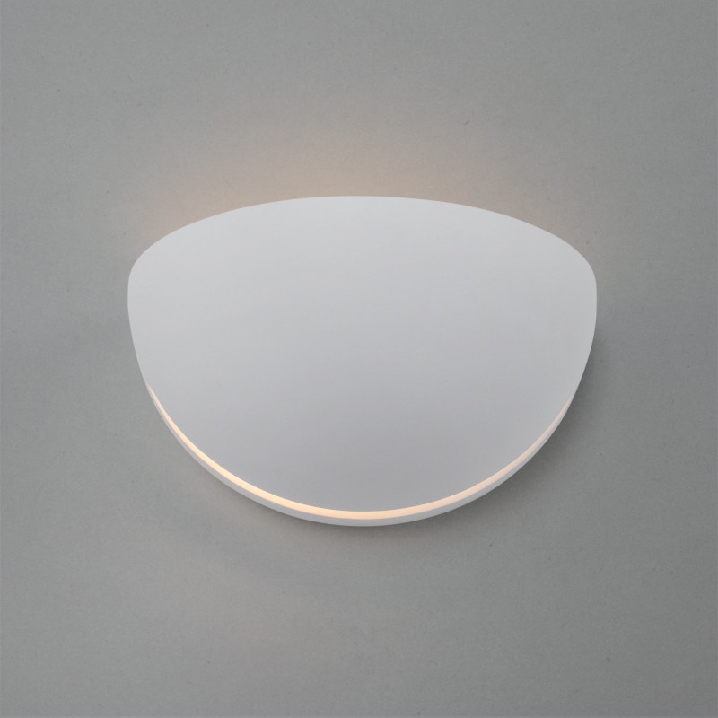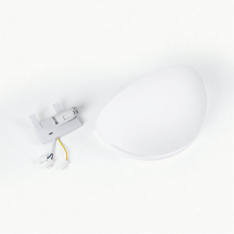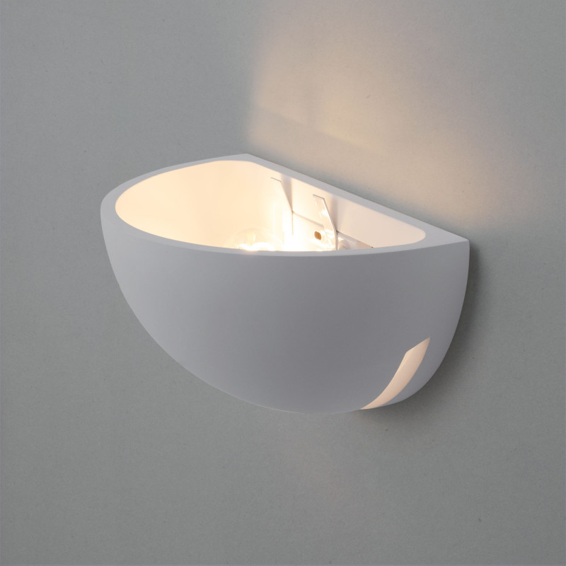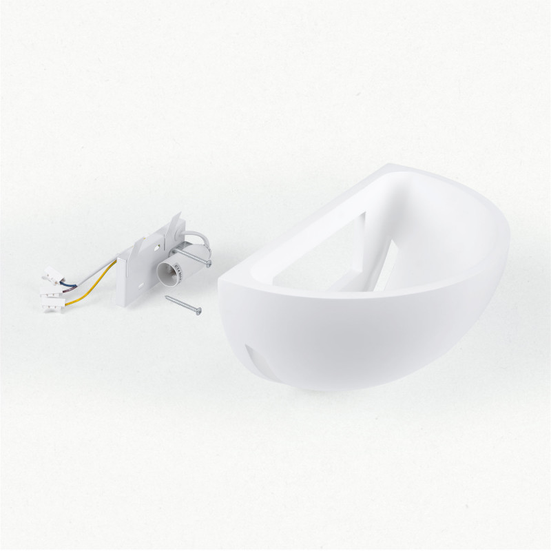 - Robuste Konstruktion: Gips ist ein widerstandsfähiges und langlebiges Material, das gegen den Lauf der Zeit und thermische Schwankungen resistent ist, was seine Langlebigkeit garantiert. Es handelt sich um eine Wandleuchte für den Innenbereich mit der Schutzart IP20.