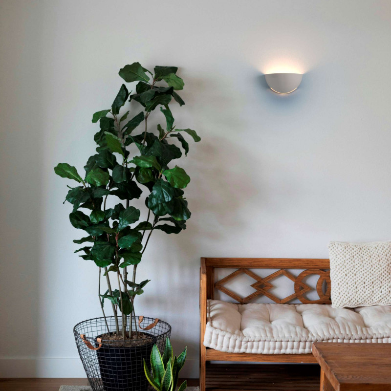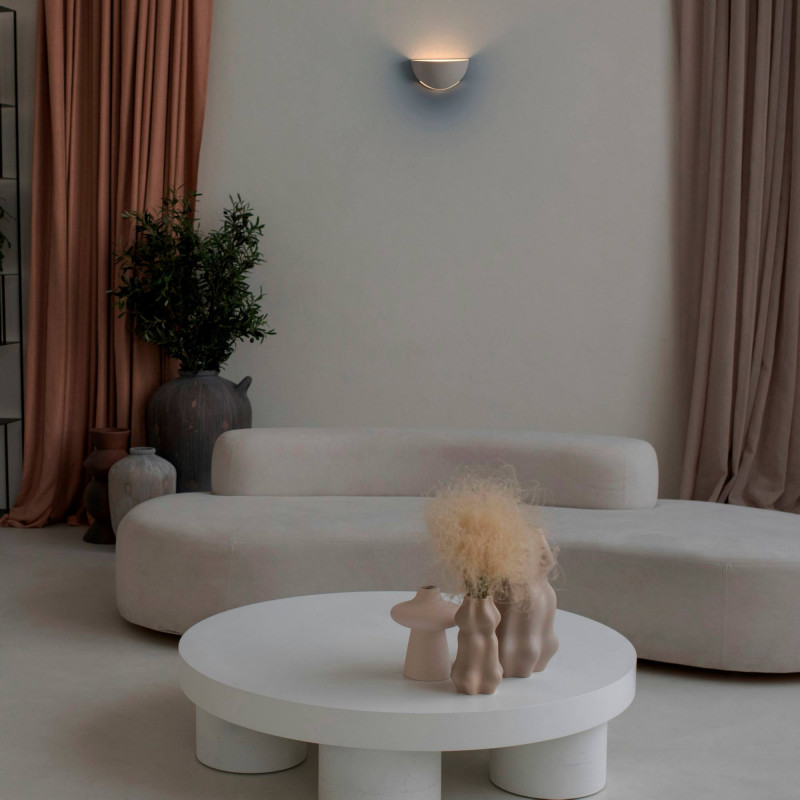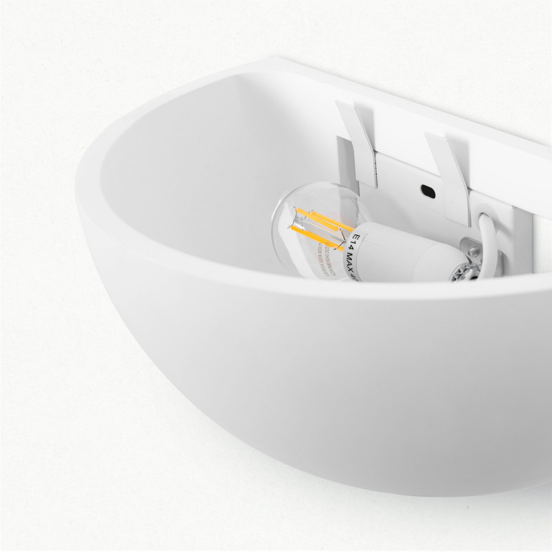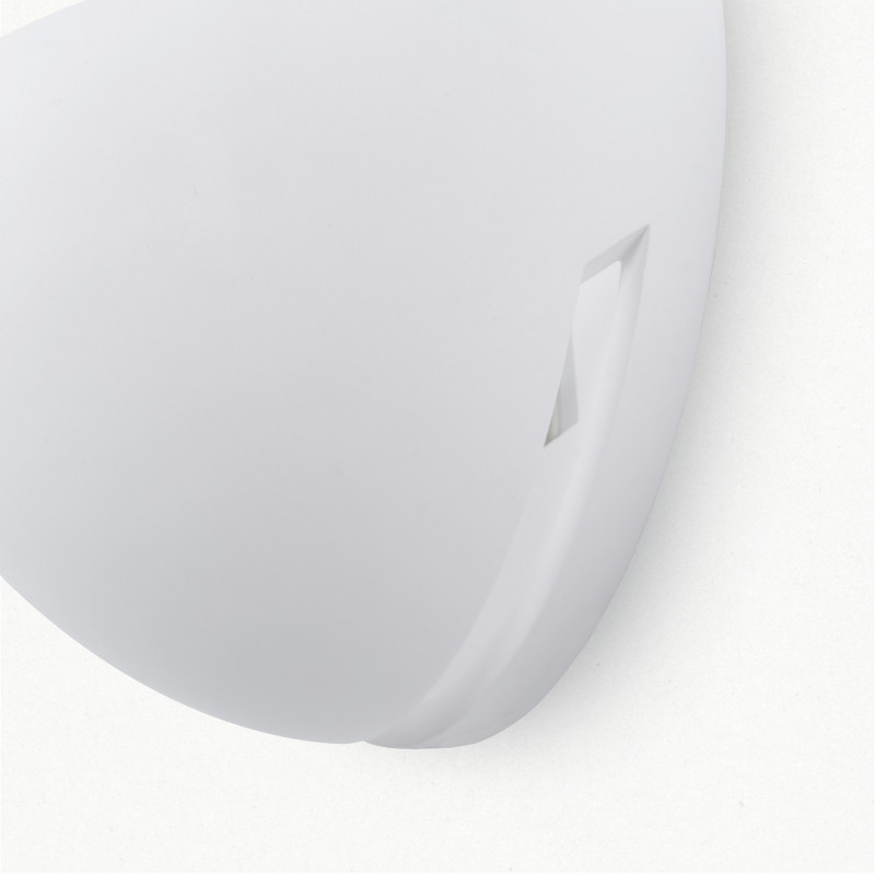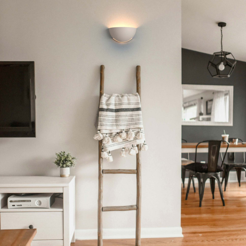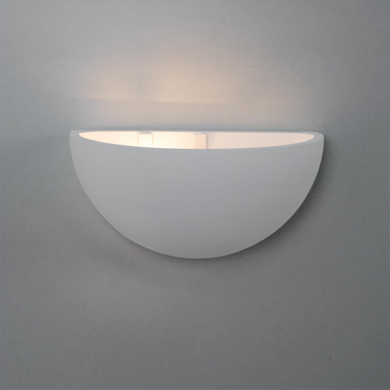 - Robuste Konstruktion: Gips ist ein widerstandsfähiges und langlebiges Material, das gegen den Lauf der Zeit und thermische Schwankungen resistent ist, was seine Langlebigkeit garantiert. Es handelt sich um eine Wandleuchte für den Innenbereich mit der Schutzart IP20.