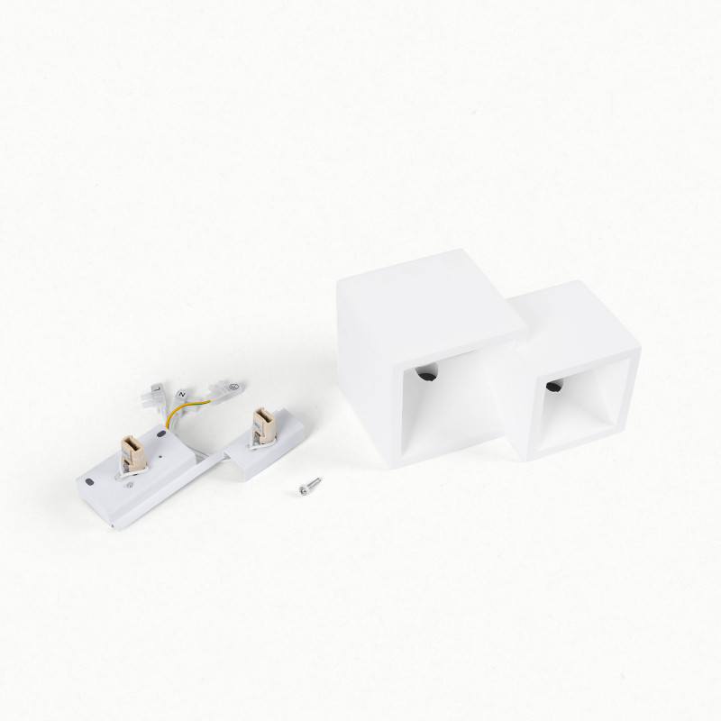 - Völlige Personalisierung: Da die Leuchte aus Gips besteht, kann sie in der Farbe der Wand gestrichen werden oder mit ihr kontrastieren, was eine vollständige visuelle Integration ermöglicht.