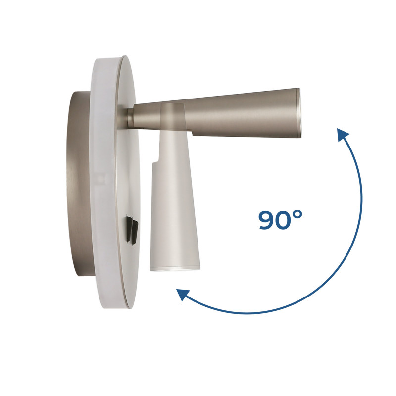 - Integrierte Schalter: Die Schalter wurden für maximalen Komfort entwickelt und ermöglichen das Ein- und Ausschalten des Lichts direkt an der Basis der Wandleuchte.